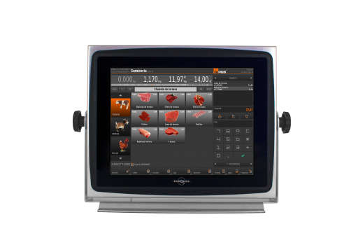 - Botões de acesso rápido de seleção de etiqueta, pesagem automática/manual, balança 1/balança 2, teclado numérico, lote, rastreabilidade e campos fixos.