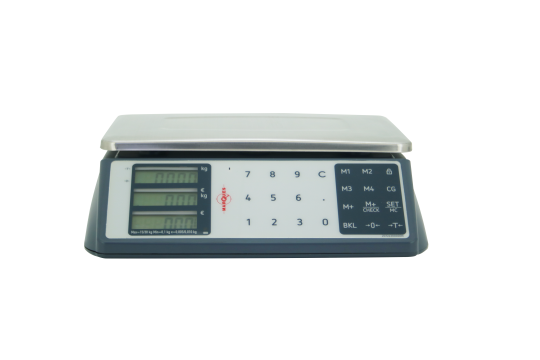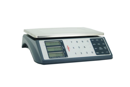 - · Bateria interna recarregável (autonomia até 76 horas); · Teclado tátil; · 4 estados de memória para preço unitário; · Fixação da tara; · Alcance Tara: 50% capacidade máxima; · Alcance Zero: ±2% Máx.; · Cálculo de troco*; · Função de acumulação*; · Ecrã LCD com retro-iluminação; · Ecrã LCD para cliente; · Porta RS232; · Temperatura de funcionamento: 0 - 40ºC e humidade 85%; · Prato em aço inoxidável.