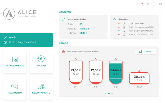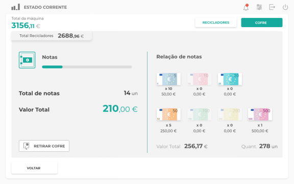 • 8 Hoppers independentes (1 para cada denominação de moedas)