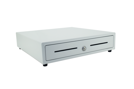 Gaveta com compartimento de moedas e notas, com duas chaves.